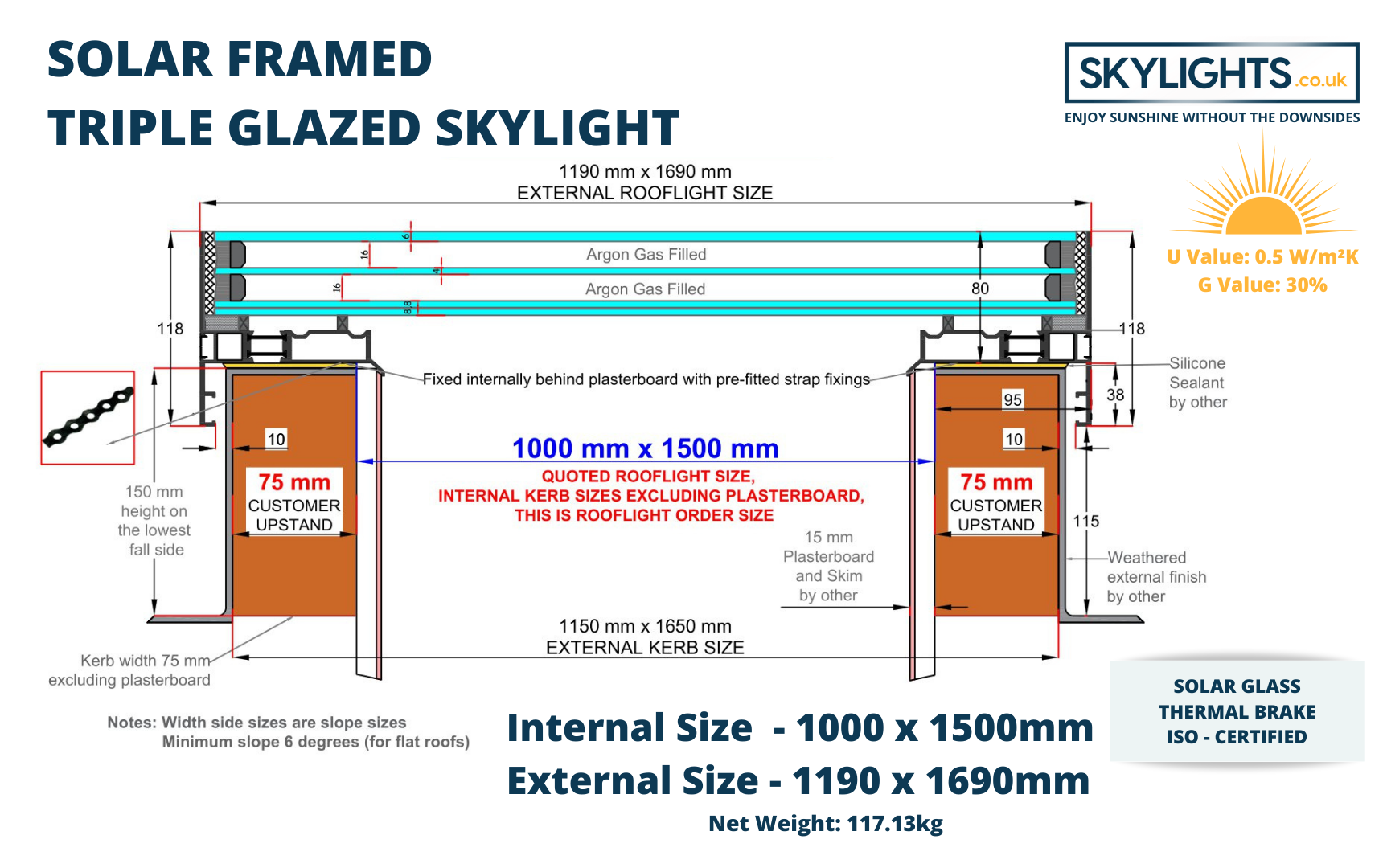 Rated 5 out of 5Just installed a Solar Framed triple glazed skylight in my home extension, size 1000 x 1500 mm. The difference it’s made is astonishing—brighter and more energy-efficient. Service was top-notch, highly recommended!
