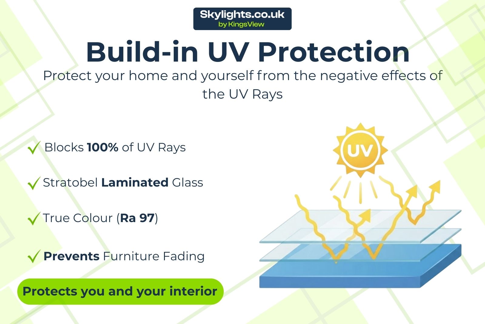 Our Flat Roof Skylights are composed of three distinct glass panes, each contributing to the unit’s durability and thermal efficiency: