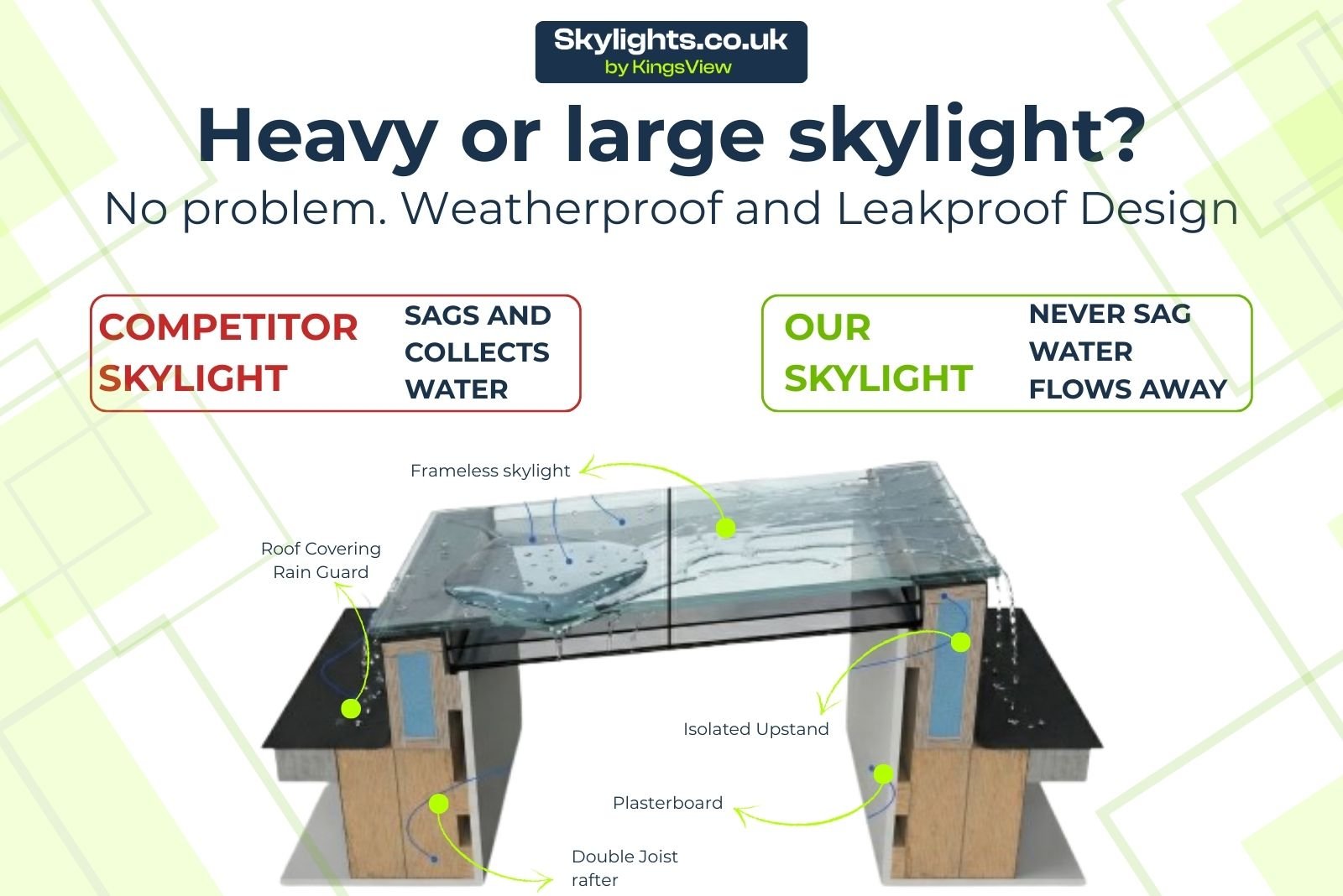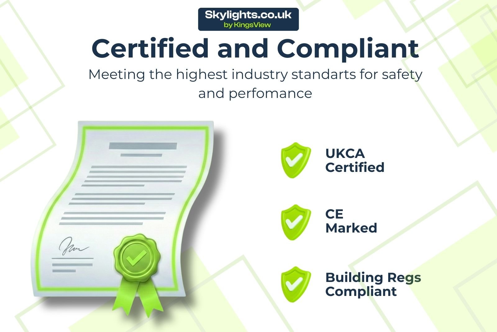 - Regulation Compliant: Our skylights meet all British Standards & Building Regulations and carry the CE safety marking, ensuring they meet the highest safety and quality standards.