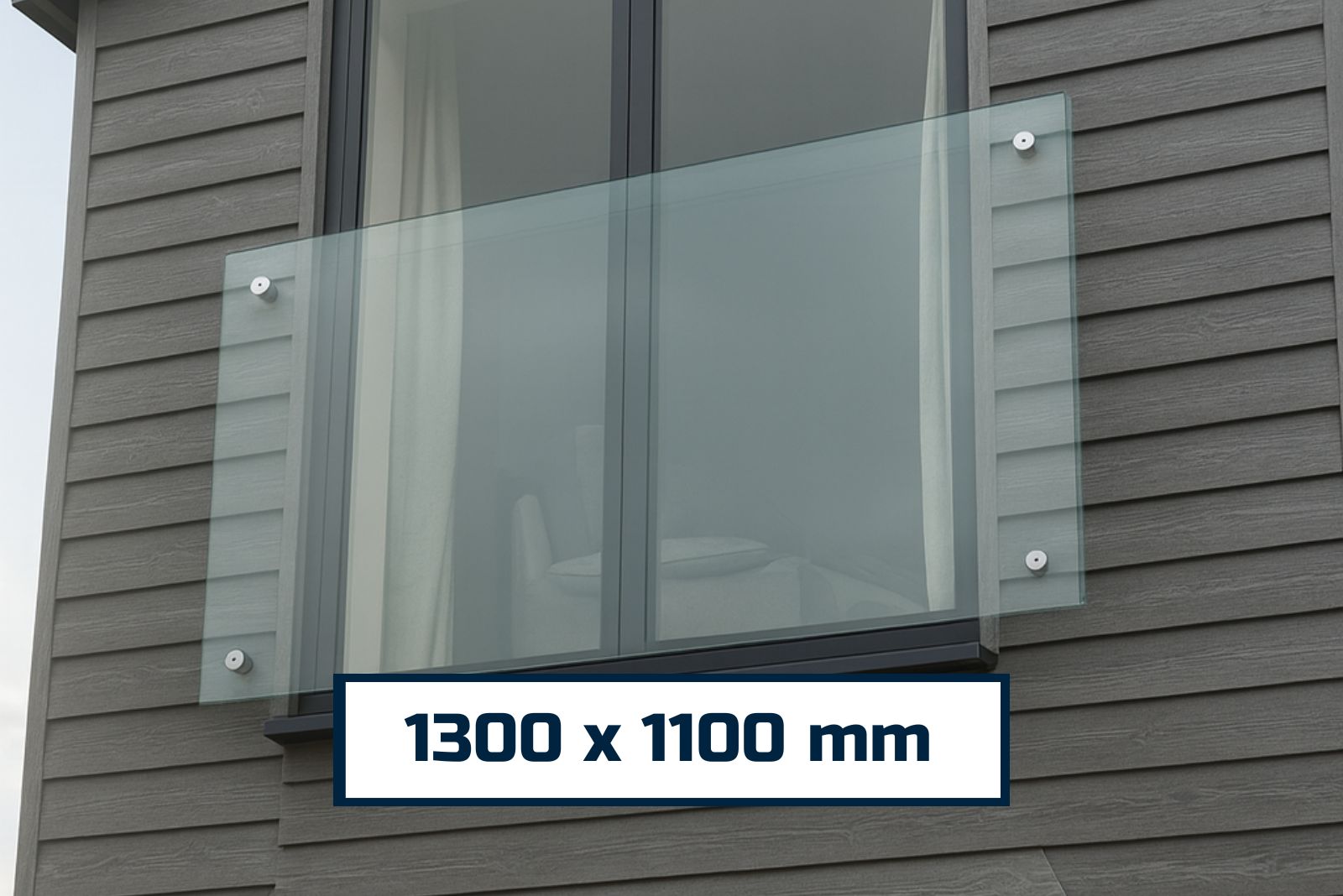 Frameless Glass Juliet Balcony – 1300mm x 1100mm with Glass Adapters