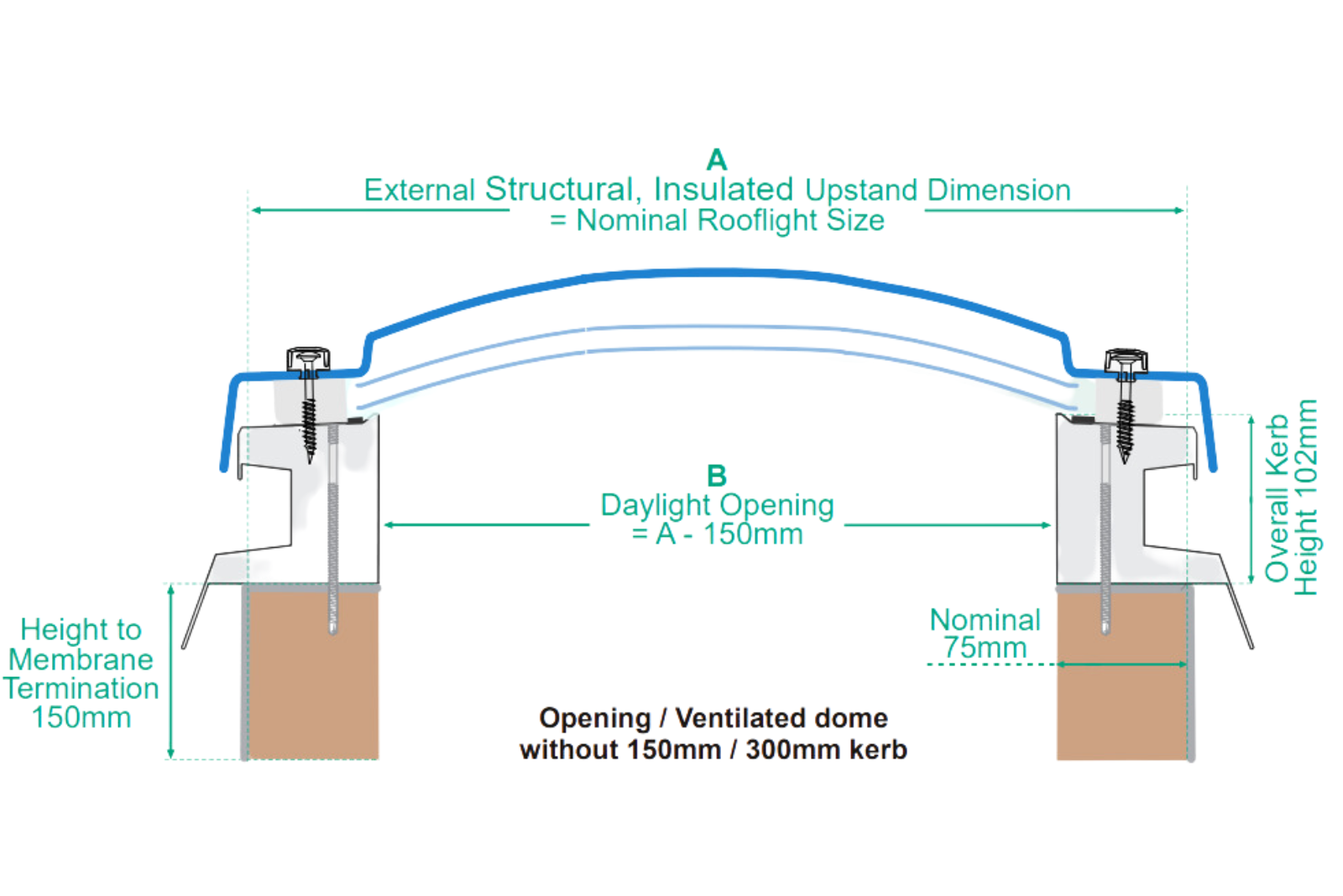 Dome only is supplied for screw fixing directly to the top of a builders upstand